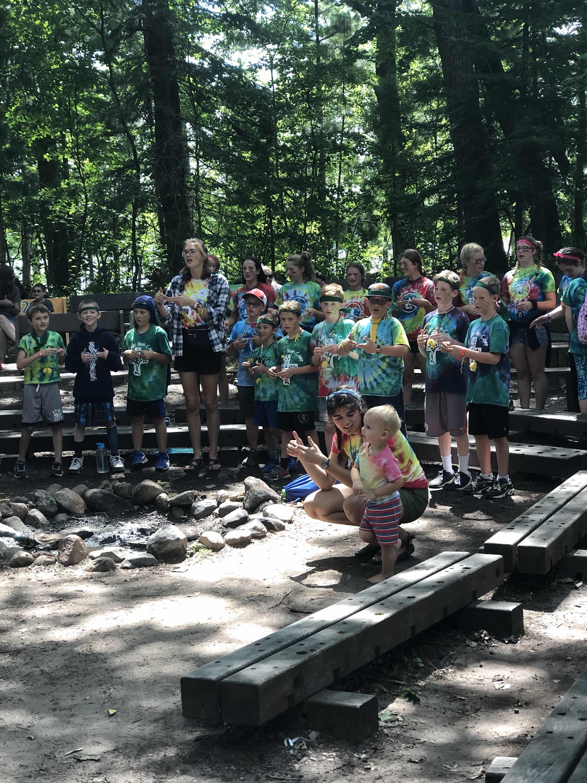 At lunch, he was back to being a big boy as he once again sat with Leah and her cabin. When they finished lunch, he walked with her down to the fire circle for the closing program and sat with her and her group.