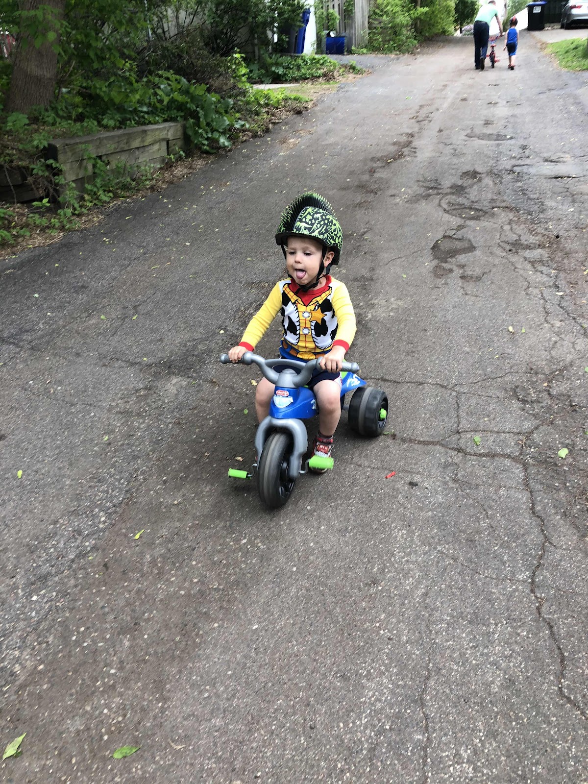 When I got home, they were playing outside and Nate was just about to take the training wheels off of Xander’s bike. Xander has a balance bike that he has been riding nonstop and is very fast on. He also has a pedal bike that had training wheels. Everyone told us that if he rode a balance bike, he’s be likely to just get on a pedal bike and go. I was skeptical, but within minutes, he had it figured out! He was SO proud of himself!!