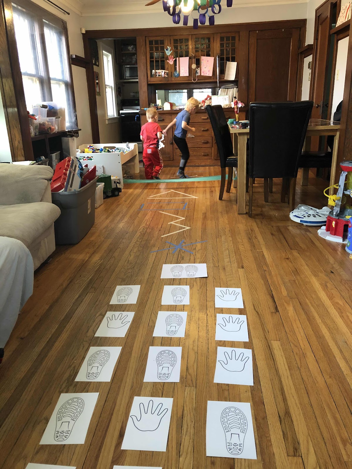 We had a superhero training course to kick off the week. The boys had to do a version of hopscotch, spin around, zig zag, do jumping jacks, do push ups, hop over a rope, run in place and then jump to the finish. They did a really good job and we practiced over and over like real superheroes do to get strong.
