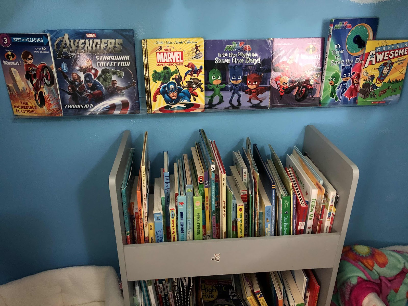 It’s a new week and so we have a new display of books! Xander wanted a PJ Mask week and Augustus wanted a Spiderman week, so that’s how we ended up with the all encompassing Superhero Week!